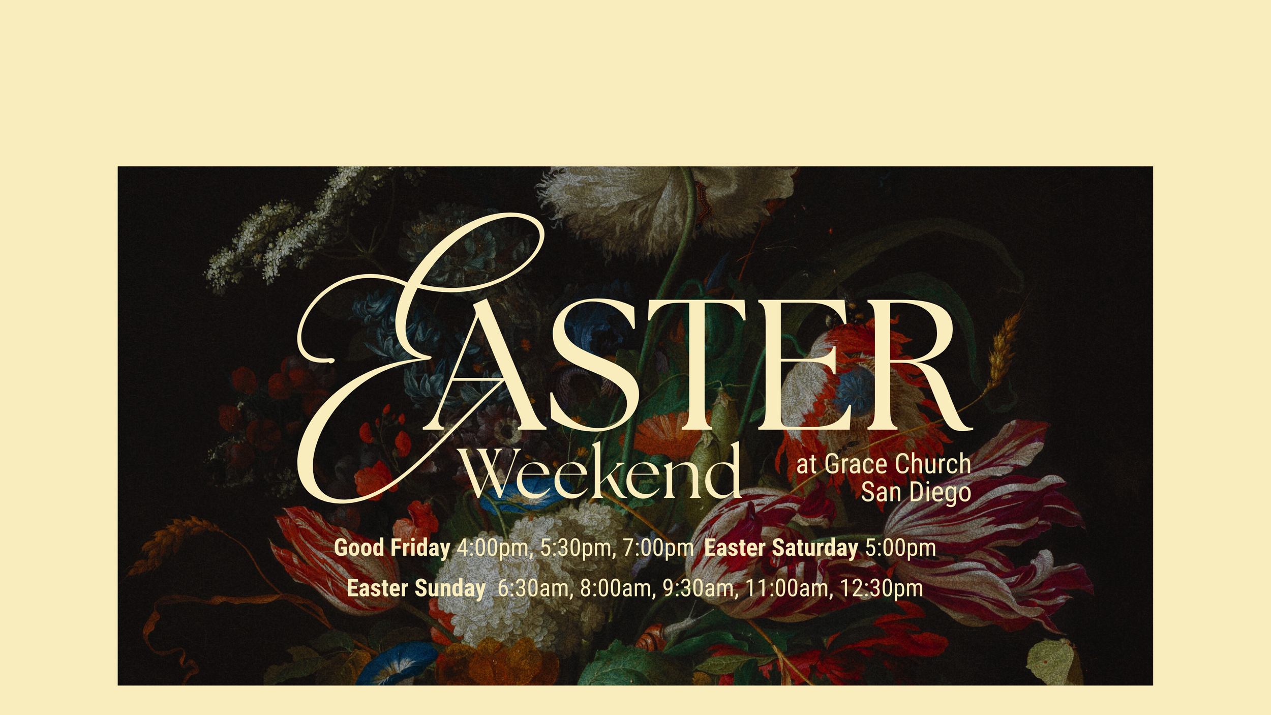 Easter services will be held on Saturday, April 4th at 5pm and Sunday, April 5 at 6:30AM (Sunrise Service), 8:00AM, 9:30AM, 11:00AM and 12:30PM. Services are one hour in length. There will be live music, a message, and baptisms! Not to mention a warm welcome, free coffee and treats!