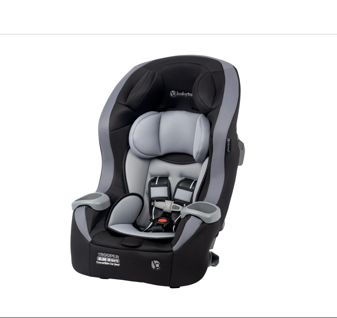 Baby Trend Trooper™ Slim 3-in-1 Convertible Car Seat is lightweight and slim and has 3 modes of use: rear facing infant (4-18 lb), rear facing toddler (18-40 lb), and forward facing toddler (30-65 lb). Buy on Amazon for $120. Also available at Target and Walmart online.